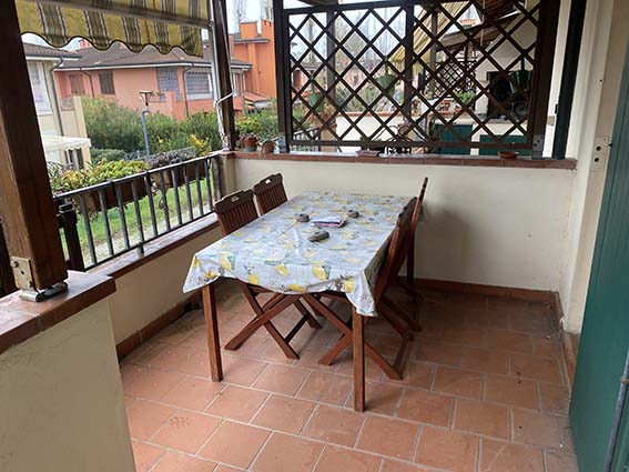 troviamo il giardino privato con casetta di legno per ricovero attrezzi e fontanella per l’irrigazione, con la scala si accede al terrazzo abitabile